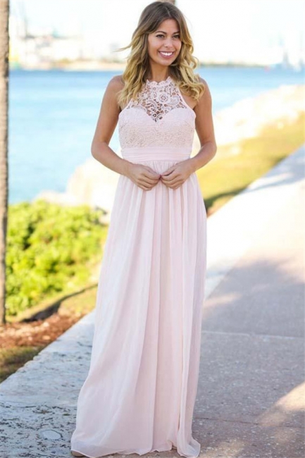 - Open Back Pink Lace Chiffon Bridesmaid Dress | Sleeveless Sexy Dresses for Maid Of Honor,BD202138 -