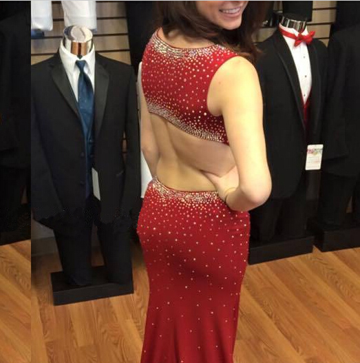 - Round Neck prom dress,Open Waist prom dress,Sequin prom dress,Long Prom Dress,Red prom dresses,BDS00086 -