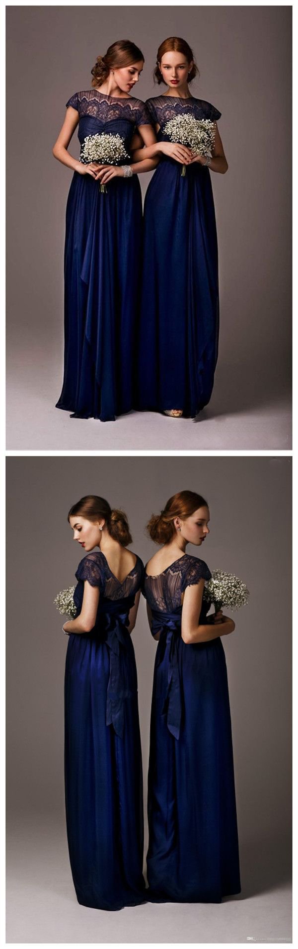 - Long Bridesmaid Dress, navy blue Bridesmaid Dress, lace sleeves Bridesmaid Dress, Dress For Wedding, custom Bridesmaid Dress, BD4932 -