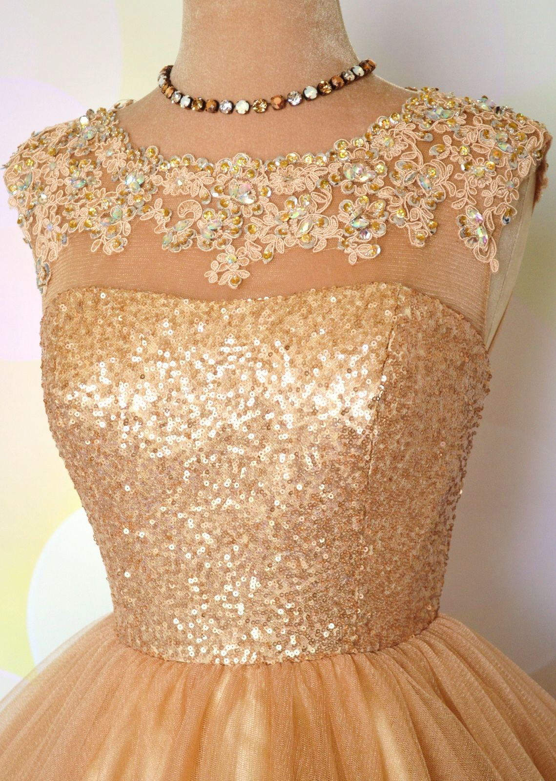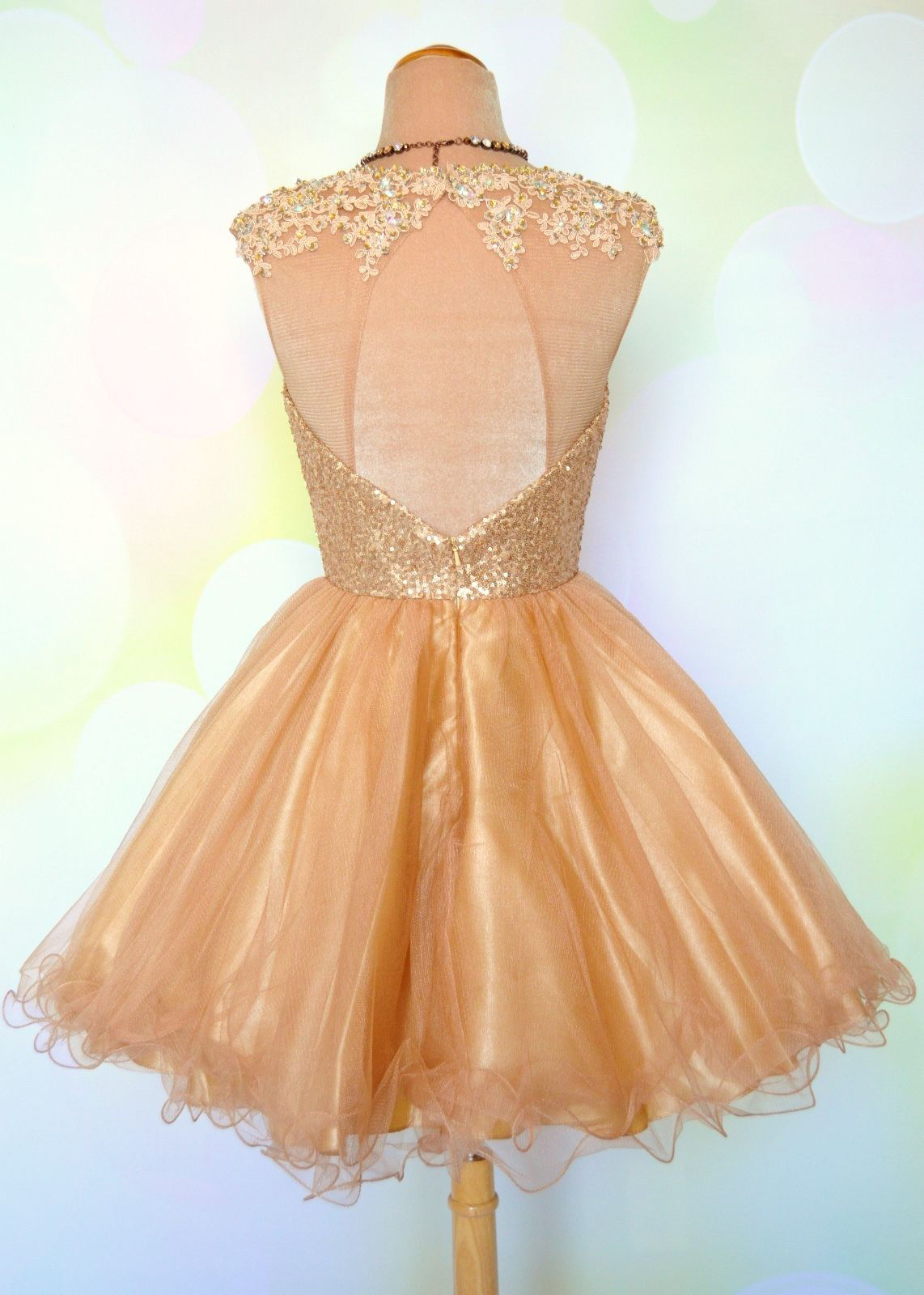 - Gold homecoming dress, sequin homecoming dress, open back homecoming dress, scoop neck homecoming dress, cheap homecoming dress,BD1607085 -