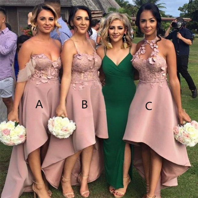 - Pink Hi-Lo Appliques Bridesmaid Dresses | A-Line Sleeveless Maid of Honor,BD202114 -