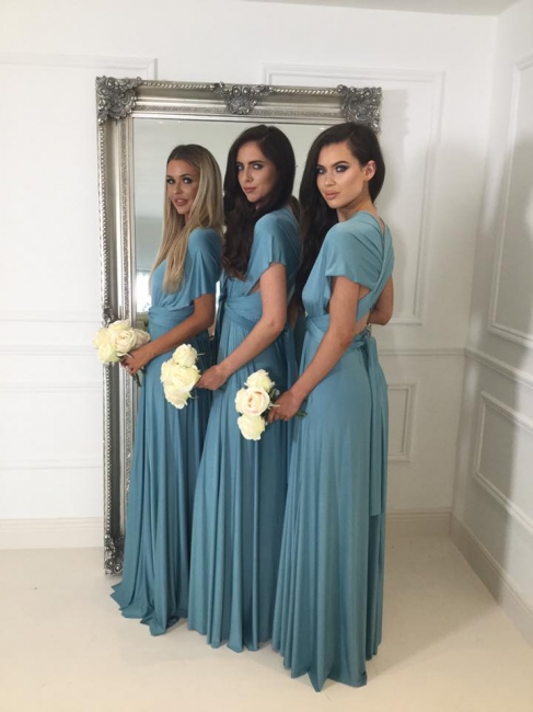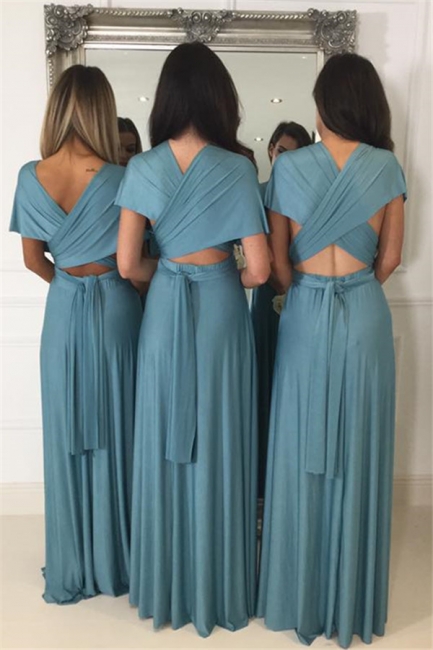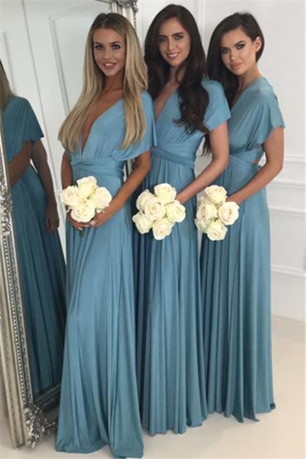 - Deep V-neck Convertible Bridesmaid Dresses | Floor Length Sexy Blue Chiffon Wedding Party Dress,BD202124 -
