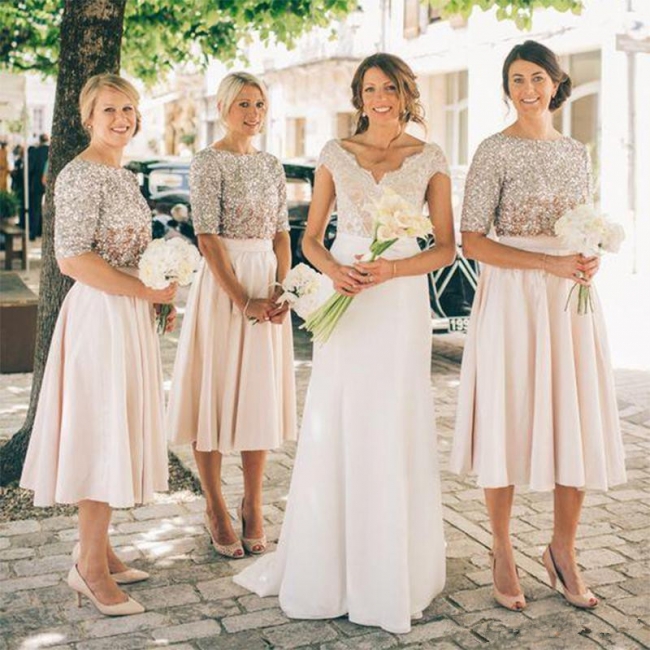 - Silver Top Half Sleeves Short Bridesmaid Dress | Baby Pink Bridesmaid Dress Online,BD202135 -