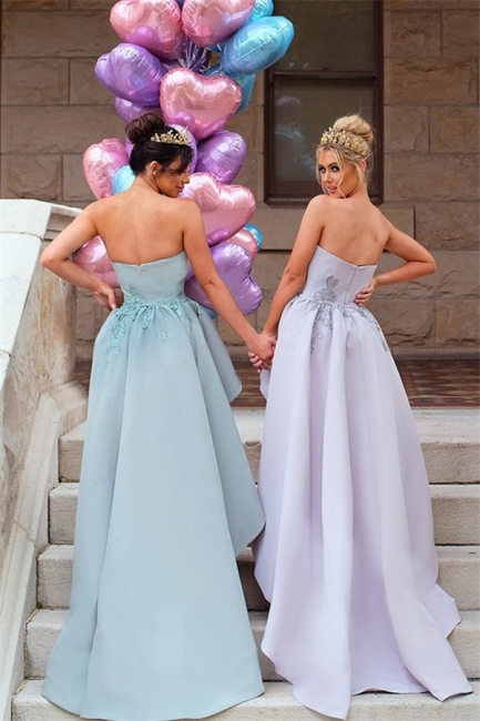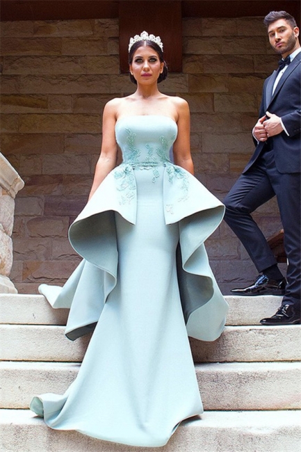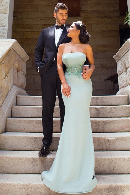 - Elegant Applique Long Mermaid Strapless Bridesmaid Dress with Detachable Train,BD202148 -