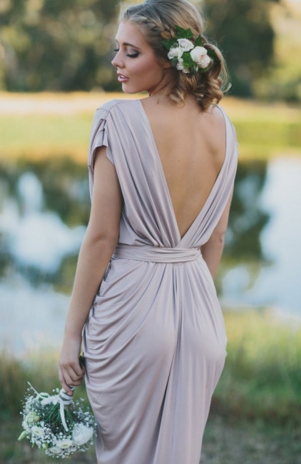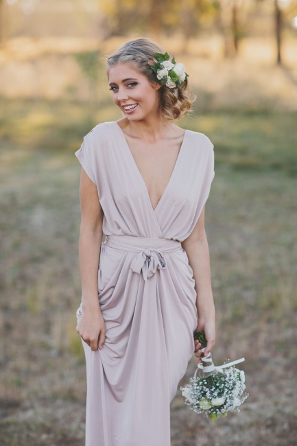 - Simple Deep V-Neck Short Sleeves Bridesmaid Dresses Ruffles Sheath Wedding Party Dress,BD202159 -