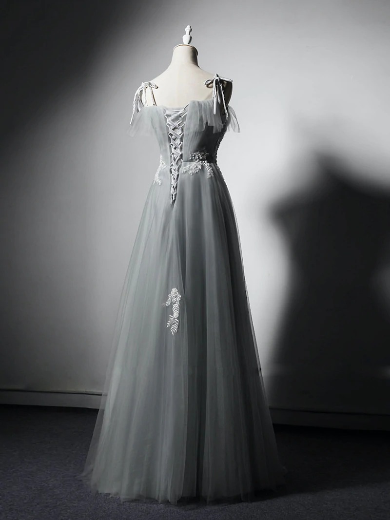 - Simple gray tulle lace long prom dress, gray tulle formal dress,BD202168 -