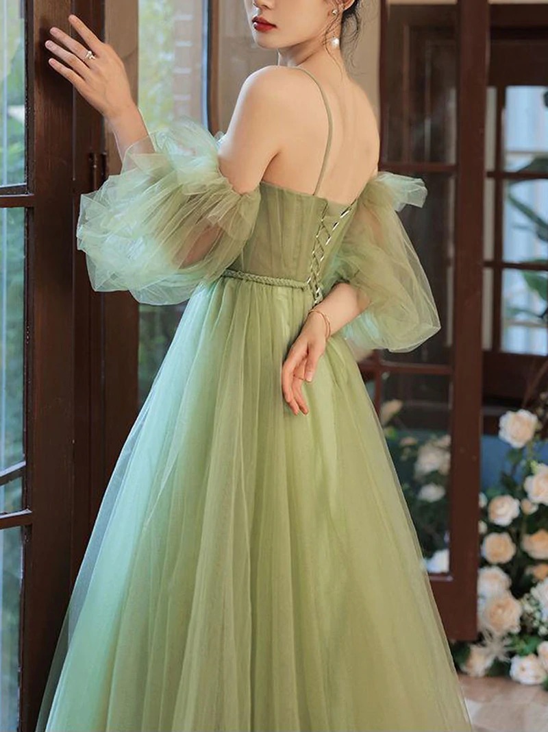 - Simple green tulle A line long prom dress, green evening dress,BD202185 -