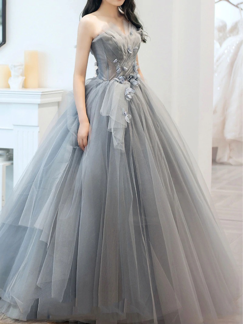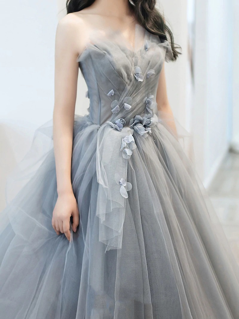 - Gray sweetheart neck tulle long prom dress, gray tulle formal dress,BD202196 -